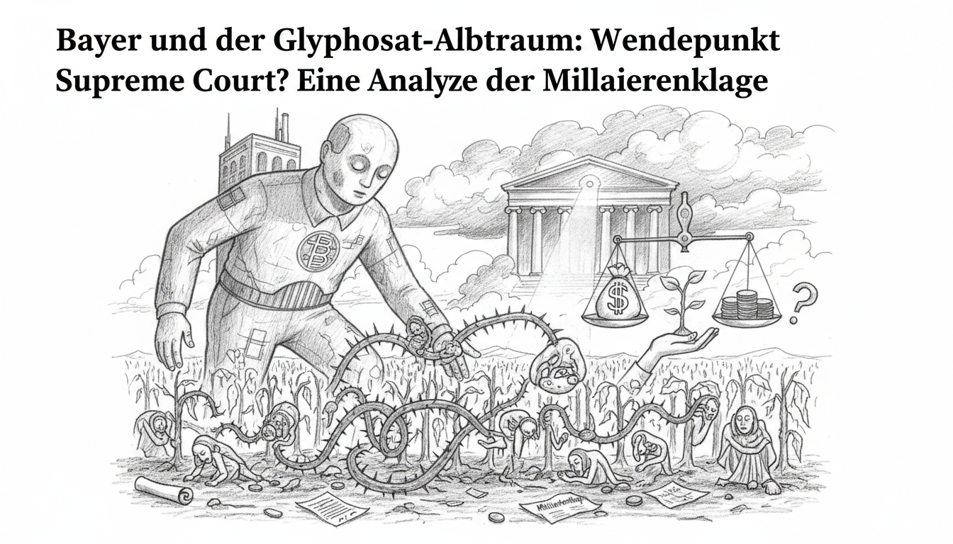 Ein juristischer Showdown von globaler Tragweite bahnt sich an: Der Pharmariese Bayer steht im Zentrum eines Rechtsstreits, der die Grundfesten der unternehmerischen Verantwortung erschüttert. Seit der milliardenschweren Übernahme von Monsanto im Jahr 2018 hat sich der Konzern in einem Netz aus Zehntausenden Klagen verfangen. Der Vorwurf: Das meistverkaufte Unkrautvernichtungsmittel der Welt, Roundup mit dem Wirkstoff Glyphosat, soll krebserregend sein. Nach einer Serie von Niederlagen und astronomischen Schadensersatzzahlungen setzt Bayer nun alles auf eine Karte: den Supreme Court der Vereinigten Staaten. Die Entscheidung des obersten US-Gerichts, einen der entscheidenden Fälle zu prüfen, könnte nicht nur über die Zukunft des Konzerns entscheiden, sondern auch einen Präzedenzfall für die gesamte Industrie schaffen. Dieser Artikel beleuchtet die Hintergründe, analysiert die Strategien und wagt eine Prognose über den Ausgang dieses juristischen Thrillers, der weit mehr ist als nur ein Streit um ein Pflanzenschutzmittel. Es ist ein Kampf um Wissenschaft, Recht, wirtschaftliche Existenz und die Gesundheit von Millionen von Menschen.