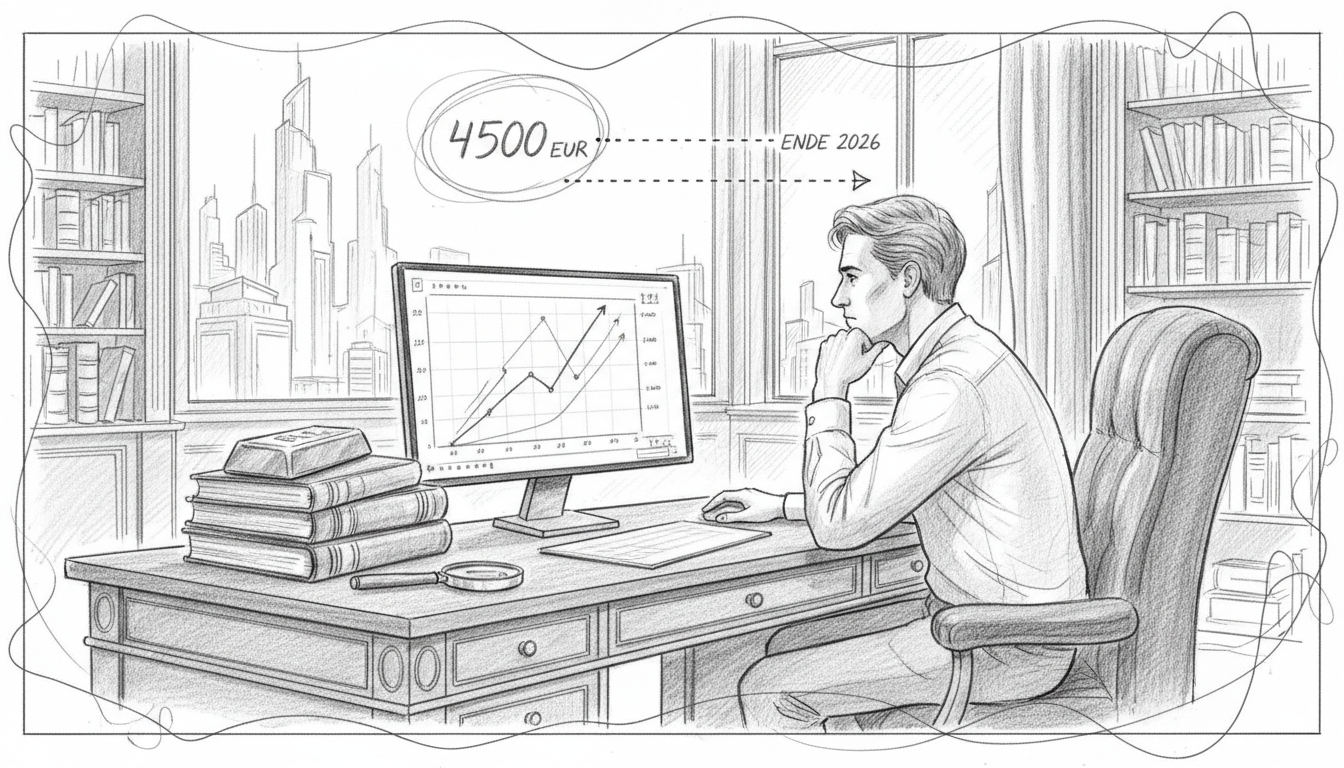 Featured Snippet: Für Ende 2026 deuten institutionelle Modelle auf eine Spanne zwischen 2.800 € und 4.200 € pro Feinunze hin. Trotz hoher Zinsen treiben geopolitische Unsicherheiten und massive Käufe der Zentralbanken (insbesondere China) den Preis. Anleger sollten Rücksetzer nutzen, da der langfristige Trend durch die Entwertung der Fiat-Währungen intakt bleibt.
